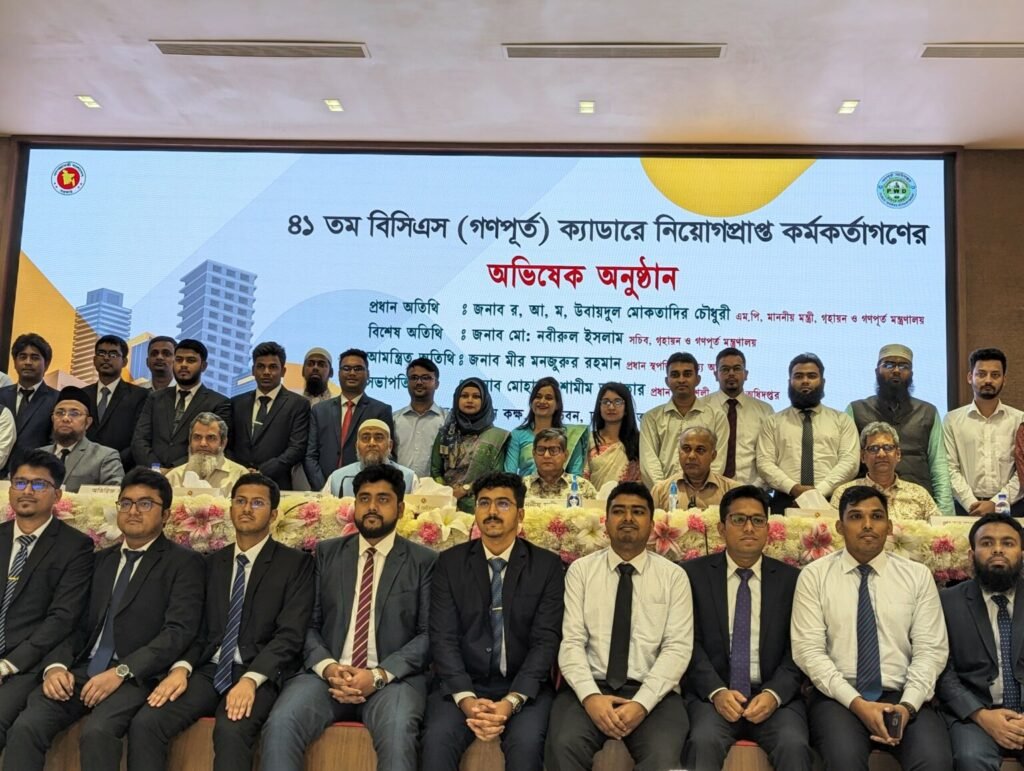 আজ বৃহস্পতিবার (২ মে) সকালে পূর্ত ভবনের সেমিনার কক্ষে ৪১তম বিসিএস (গণপূর্ত) ক্যাডারে নিয়োগপ্রাপ্ত কর্মকর্তাদের অভিষেক অনুষ্ঠানে প্রধান অতিথির বক্তব্যে তিনি এসব কথা বলেন।