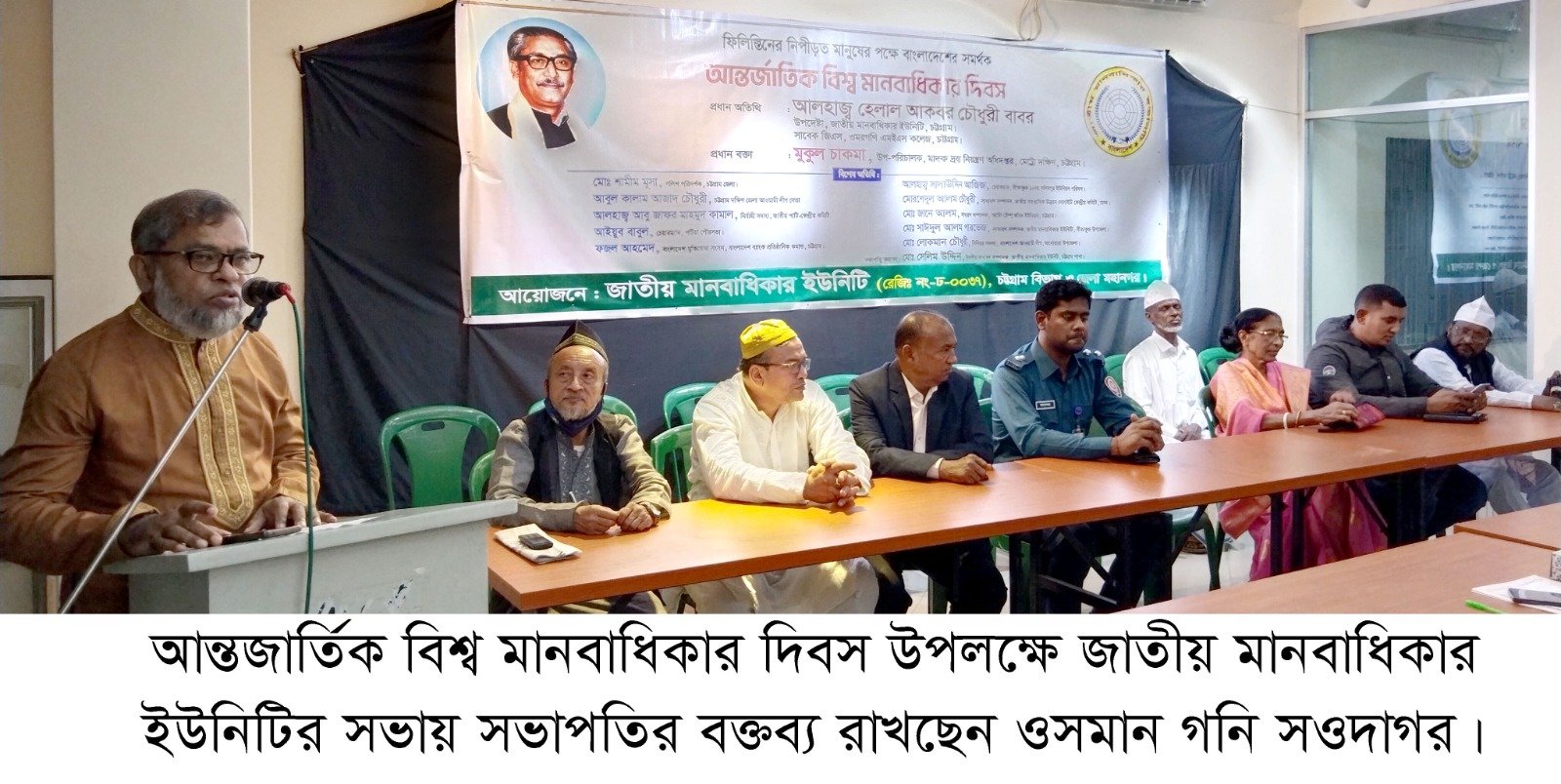 সেলিম উদ্দিন, চট্টগ্রাম অফিস : আন্তজার্তিক বিশ্ব মানবাধিকার দিবস উপলক্ষে জাতীয় মানবাধিকার ইউনিটি চট্টগ্রাম বিভাগ, জেলা ও মহানগর কর্তৃক আয়োজিত দৈনিক আজাদী হল রুমে ১০ ডিসেম্বর সন্ধ্যায় আলোচনা সভা অনুষ্ঠিত হয়। জাতীয় মানবাধিকার ইউনিটি উপদেষ্টা মন্ডলী ওসমান গনি সওদাগরের সভাপতিত্ব করেন। সমুদ্র টিটু, সুমা মু’সুদ্দীর সঞ্চালনায় উক্ত আলোচনা সভায় প্রধান অতিথি হিসেবে উপস্থিত ছিলেন মাদকদ্রব্য নিয়ন্ত্রণ অধিদপ্তর চট্টগ্রাম মেট্রো উত্তর কার্যালয়ের সহকারী পরিচালক রাজেশ্বর দাশ। আরো উপস্থিত ছিলেন জাতীয় মানবাধিকার ইউনিটির চট্টগ্রাম বিভাগীয় শাখার সিনিয়র সহ-সভাপতি মোহাম্মদ জসিম উদ্দিন, জাতীয় মানবাধিকার ইউনিটি চট্টগ্রাম বিভাগীয় শাখার সাধারণ সম্পাদক সাংবাদিক সেলিম উদ্দিন। বিশেষ অতিথি ছিলেন চট্টগ্রাম দক্ষিণ জেলা আওয়ামী লীগ নেতা মোহাম্মদ আবুল কালাম আজাদ চৌধুরী, জাতীয় মানবাধিকার ইউনিটির সিতাকুন্ড উপজেলার সাধারণ সম্পাদক সাইদুল আলম পারভেজ, বাংলাদেশ আওয়ামী লীগ আনোয়ারা উপজেলার সিনিয়র সদস্য মোহাম্মদ লোকমান চৌধুরী, অটো টেম্পু শ্রমিক ইউনিয়ন চট্টগ্রামের সাধারণ সম্পাদক মোহাম্মদ জানে আলম, সিতাকুন্ড ১০ নং সলিমপুর ইউনিয়ন পরিষদের চেয়ারম্যান আলহাজ্ব সালা উদ্দিন আজিজ, চট্টগ্রাম কলেজ ছাত্রলীগের সভাপতি মোহাম্মদ মঈনুল ইসলাম, বিজয় রাজ, মোহাম্মদ জুয়েল, সাদ্দাম হোসেন, ডেইজি আকতার প্রমুখ। উক্ত অনুষ্ঠানে বিশ্ব মানবতা রক্ষায় সবাইকে একসাথে কাজ করার আহবান জানান।
