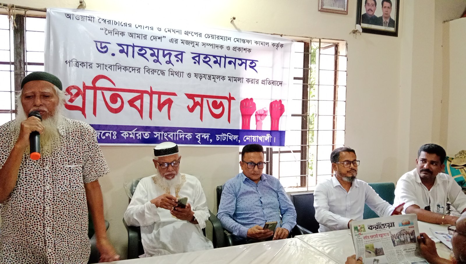 আলমগীর হোসেন হিরু, চাটখিল (নোয়াখালী): দৈনিক আমার দেশ এর সম্পাদক মাহমুদুর রহমান সহ সাংবাদিকদের বিরুদ্ধে ষড়যন্ত্রমূলক মিথ্যা মামলা করার প্রতিবাদে চাটখিল প্রেসক্লাবে এক প্রতিবাদ সভা অনুষ্ঠিত হয়েছে।