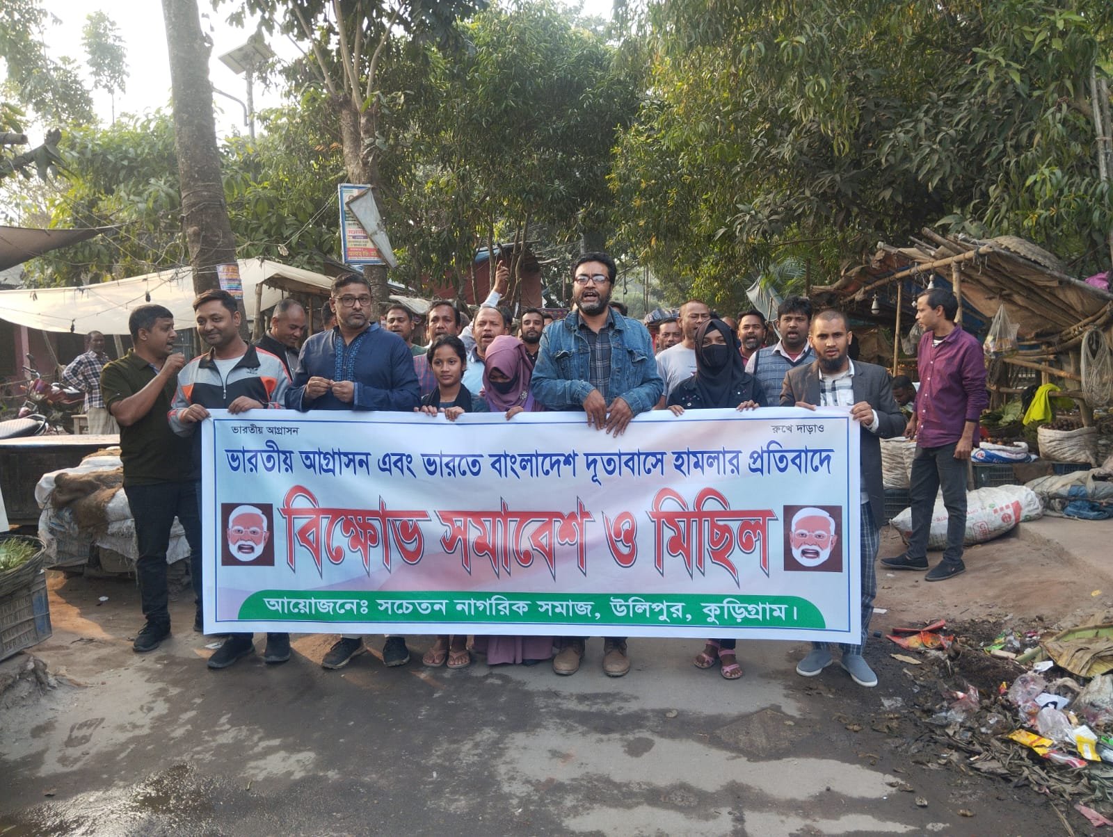 মোহাইমিনুল ইসলাম: কুড়িগ্রামের উলিপুরে ভারতীয় আগ্রাসন ও আগড়তলায় বাংলাদেশের সহ-দূতাবাসে হামলা এবং জাতীয় পতাকা অবমাননার প্রতিবাদে সচেতন নাগরিক সমাজের ব্যানারে বিক্ষোভ মিছিল-সমাবেশ অনুষ্ঠিত হয়েছে।