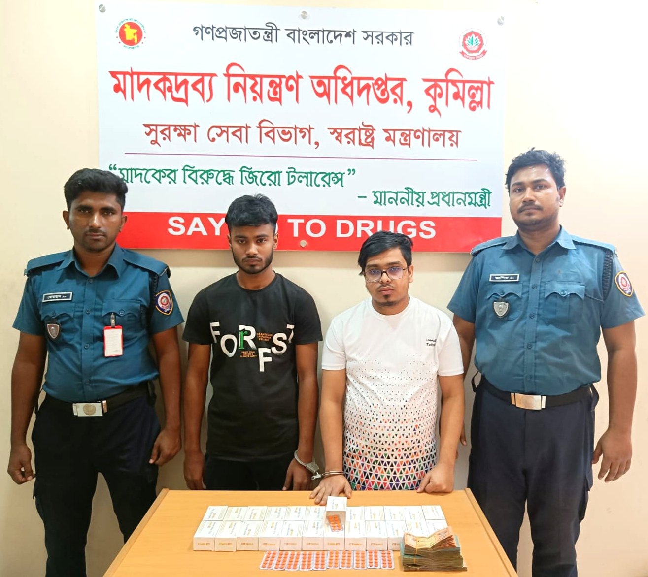 কুমিল্লা মাদকদ্রব্য নিয়ন্ত্রণ অধিদপ্তর মাদকবিরোধী অভিযানে  অবৈধ মাদক এবং টাকা সহ দুইজন আটক