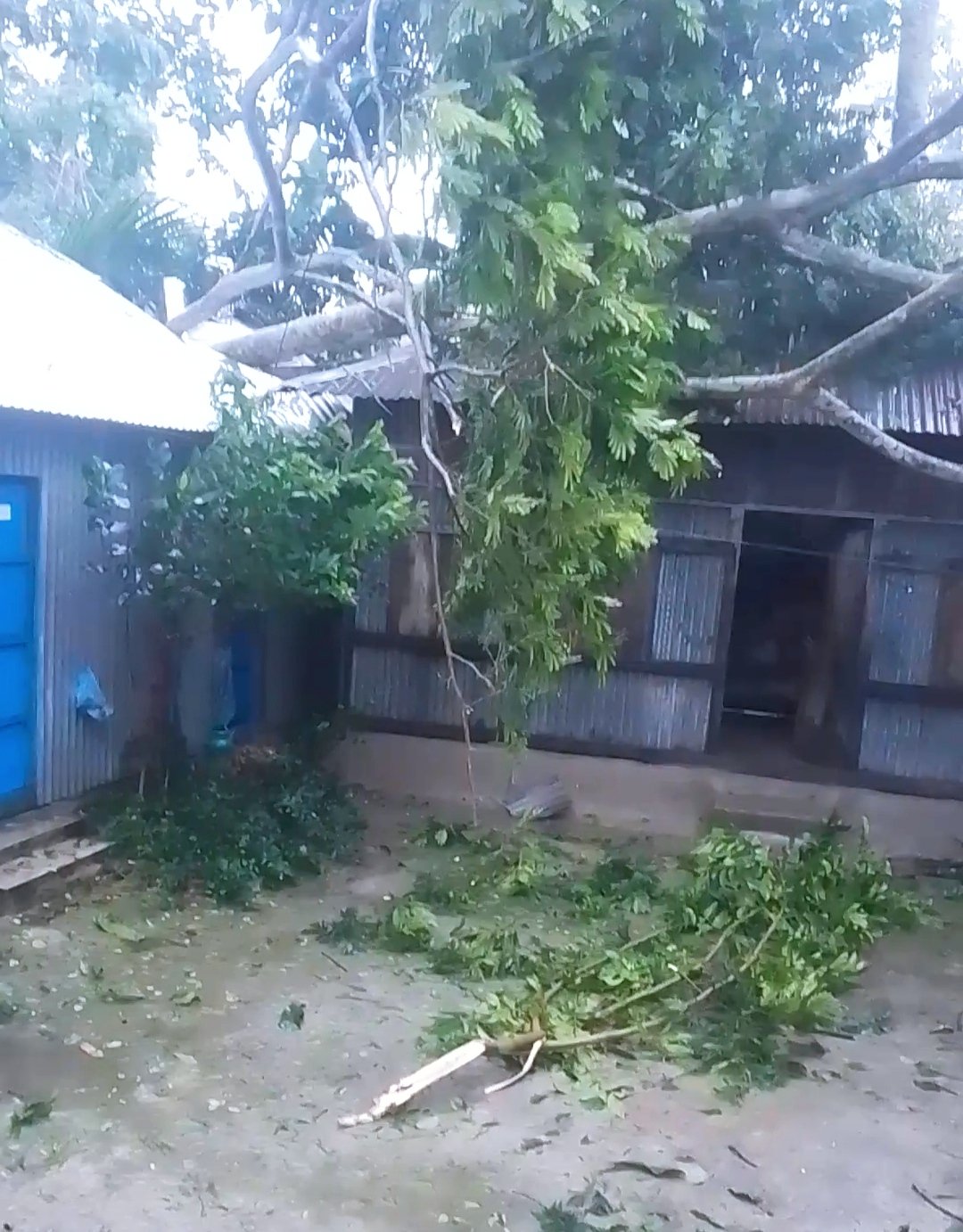 ব্রাহ্মণবাড়িয়া নবীনগর উপজেলার জিনদপুর ইউনিয়নের বাঙ্গরা গ্রামের মোহাম্মদ রুপ মিয়া’র ছেলে মোহাম্মদ আলমগীর হোসাইন পেশায় একজন নির্মাণ শ্রমিক,প্রতিদিনের মতো সোমবার তিন মেয়ে এবং স্ত্রীকে ঘুমাচ্ছিলেন মধ্যরাতে বিকট শব্দে তাদের ঘুম ভেঙ্গে যায়,ঘুম থেকে উঠেই দেখে সারা শরীল বৃষ্টিতে ভিজে গেছে ঘরের চালে বিশাল আকৃতির গাছ পড়ে আছে,অল্পের জন্য প্রানে বাচেন সবাই,কোন রকমে স্ত্রী মেয়েকে নিয়ে ঘর থেকে বের হতে সক্ষম হয়।