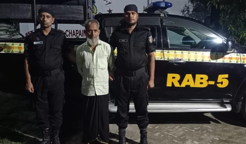 সিপিসি-১, চাঁপাইনবাবগঞ্জ ক্যাম্প, র্যাব-৫, রাজশাহীর একটি অপারেশন দল ২৩ জুন ২০২৩ ইং তারিখ ২০:০০ ঘটিকায় গোয়েন্দা তথ্যের ভিত্তিতে, চাঁপাইনবাবগঞ্জ জেলার গোমস্তাপুর থানাধীন ৫নং রহনপুর ইউনিয়নের মিশন মোড়স্থ জনৈক কর্ণেলিউসের চায়ের দোকানের সামনে পাঁকা রাস্তার পাশে কোম্পানী অধিনায়ক লেঃ কমান্ডার রুহ-ফি-তাহমিন তৌকির এবং কোম্পানী উপ অধিনায়ক সহকারী পুলিশ সুপার মোঃ আমিনুল ইসলাম এর নেতৃত্বে একটি মাদক বিরোধী অভিযান পরিচালনা করে গাঁজা-১০.৪ কেজি সহ আসামি মোঃ লুৎফর রহমান ভোদু (৫৫), পিতা-মোঃ আশরাউল ইসলাম, মাতা-মোছাঃ খাইরুন্নেছা বেগম, সাং-কানসাট বাজার, থানা-শিবগঞ্জ, জেলা-চাঁপাইনবাবগঞ্জ’কে হাতেনাতে গ্রেফতার করে।