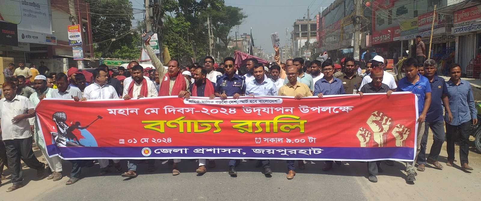 জয়পুরহাট প্রতিনিধি : জয়পুরহাটে মহান মে দিবস উৎযাপনে বর্ণাঢ্য র্যালি । ‘শ্রমিক- মালিক গড়বো দেশ, স্মার্ট হবে বাংলাদেশ’ এ স্লোগানকে সামনে রেখে বর্ণাঢ্য র্যালি ও আলোচনা সভর া মধ্য দিয়ে বুধবার জয়পুরহাটে উৎযাপন করা হলো মহান মে দিবস।