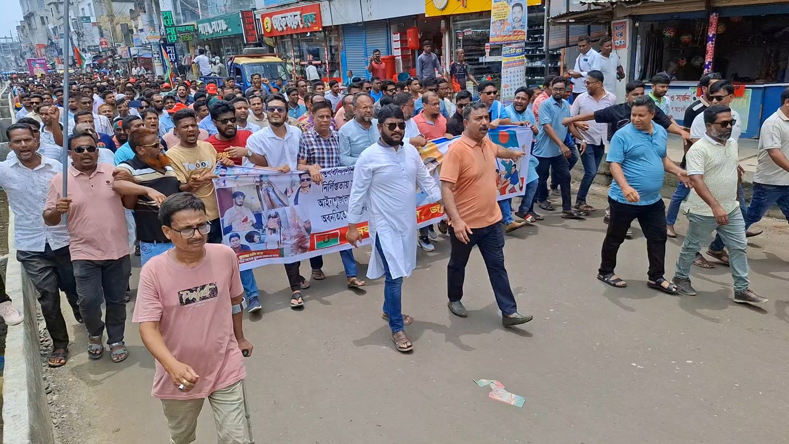 বৃহস্পতিবার বেলা সাড়ে ১১ টায় বাজলা স্কুল থেকে একটি বিক্ষোভ মিছিল শহরের প্রধান সড়ক প্রদক্ষিণ করে শহরের জিরো পয়েন্ট পাঁচুর মোড়ে গিয়ে শেষ হয়।