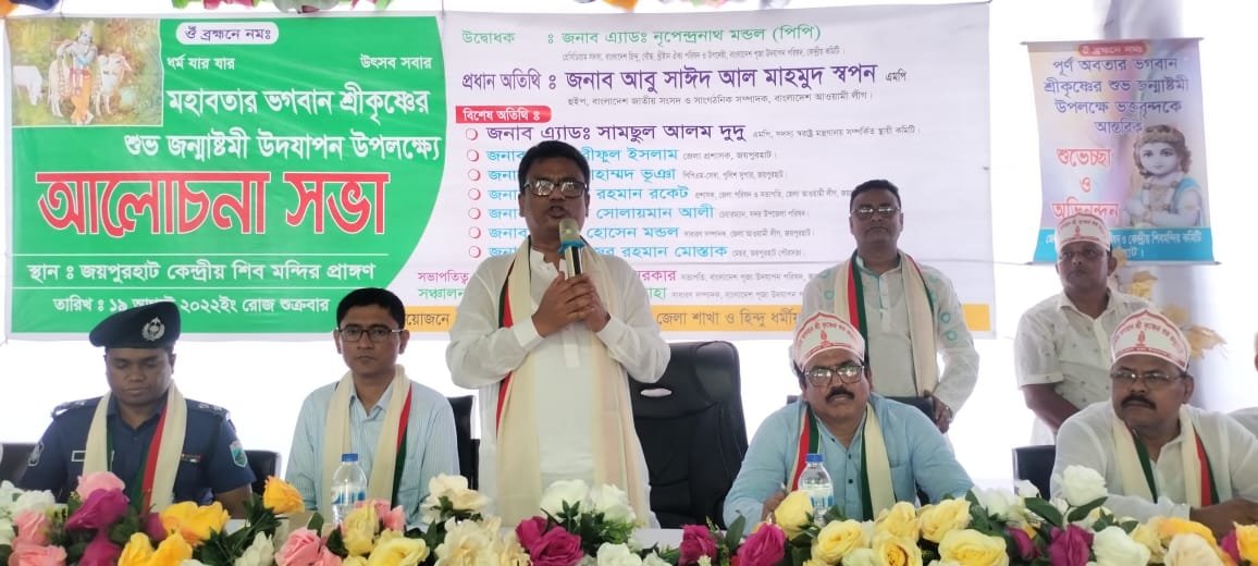 নিরেন দাস, জয়পুুরহাট প্রতিনিধি: ধর্ম যার যার উৎসব সবার প্রতিপাদ্যকে সামনে রেখে জয়পুরহাটে শ্রীকৃষ্ণের জন্মদিন উপলক্ষ্যে বর্ণাঢ্য শোভাযাত্রা ও আলোচনা সভা অনুষ্ঠিত হয়েছে।