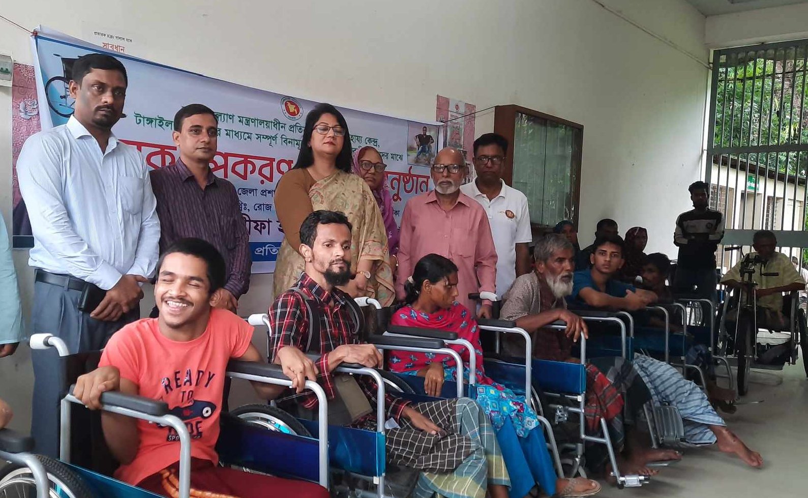ফরমান শেখ, টাঙ্গাইল: সমাজকল্যাণ মন্ত্রণালয়ের আওতায় টাঙ্গাইলে অসচ্ছল ও হতদরিদ্র প্রতিবন্ধীদের মাঝে বিনামূল্যে সহায়ক উপকরণ বিতরণ করা হয়েছে।