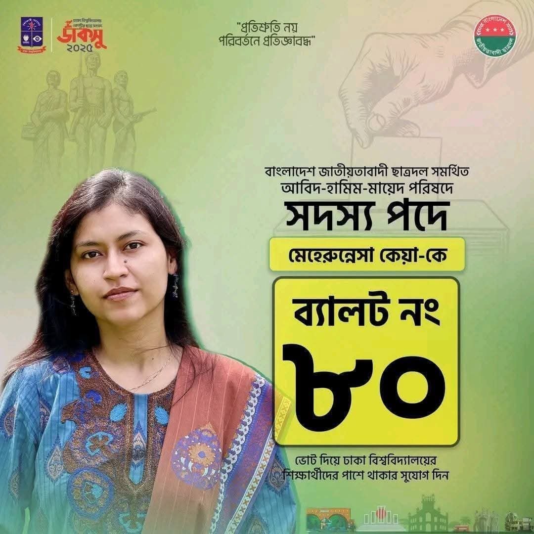 ডাকসু নির্বাচনে সদস্য পদে লড়ছেন ব্রাহ্মণবাড়িয়ার কেয়া