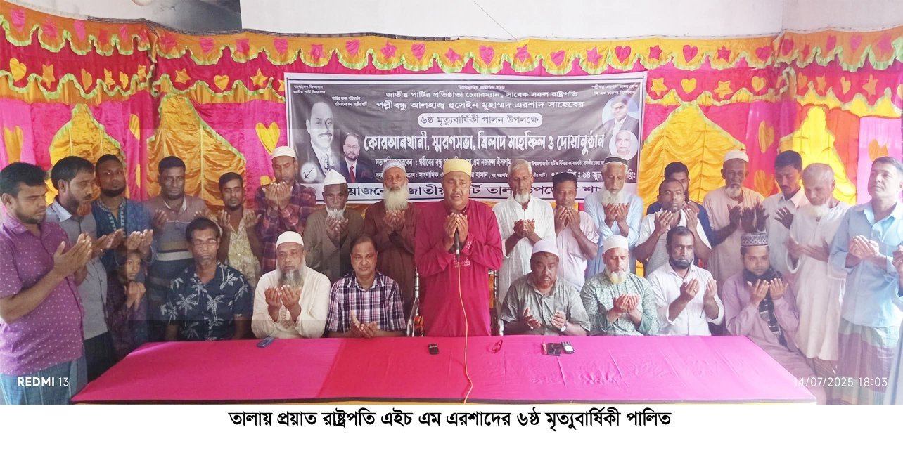রবিবার বিকালে তালা উপজেলা জাতীয় পার্টির আয়োজনে কোরআন তেলোওয়াত, স্মরণ সভা,মিলাদ মাহফিল,দোয়ানুষ্ঠান অনুষ্ঠিত হয়েছে।