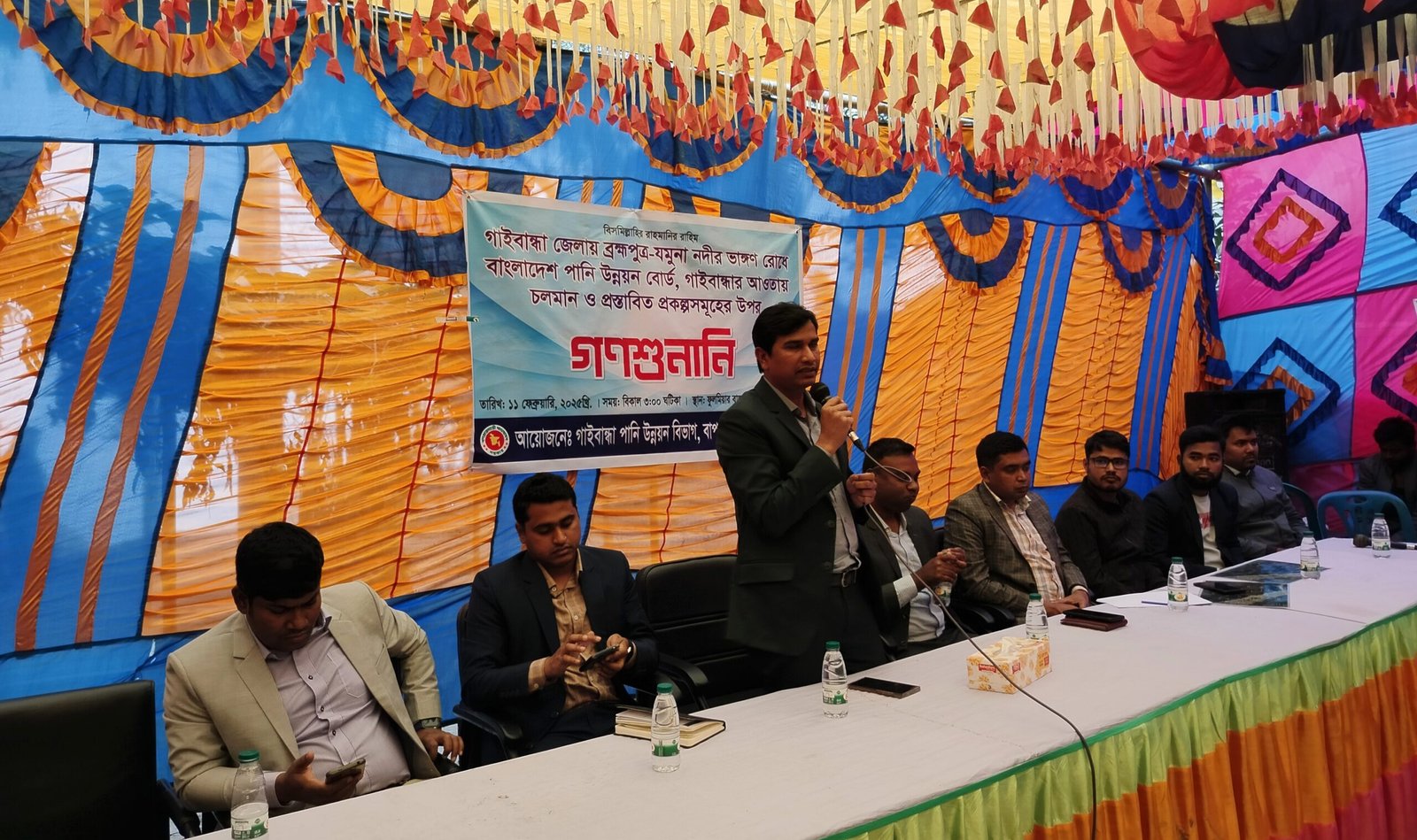 গাইবান্ধা জেলায় ব্রম্মপুত্র-যমুনা নদীর ভাঙ্গণ রোধে বাংলাদেশ পানি উন্নয়ন বোর্ড,গাইবান্ধার আওতায় চলমান ও প্রস্তাবিত প্রকল্প সমুহের উপর ১১ ফেব্রুয়ারী মঙ্গলবার বিকেলে ফুলমিয়ার বাজারের নদীতীরবর্তী স্থানে গণশুনানির ব্যবস্থা করেন পাউবো গাইবান্ধা।