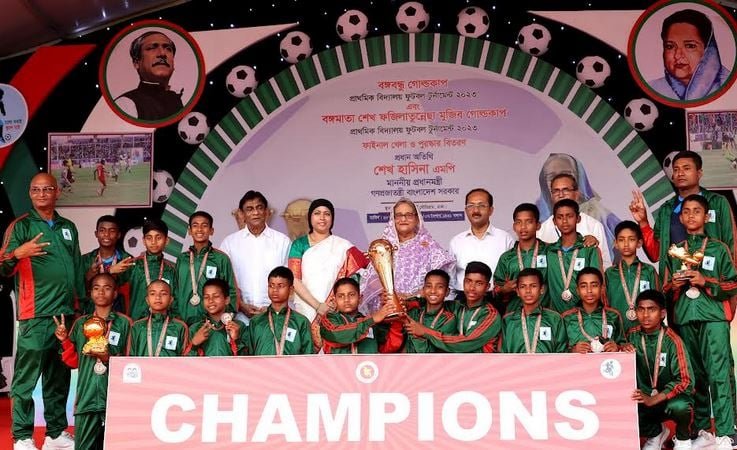 প্রধানমন্ত্রী দ্বিতীয়ার্ধে মাঠে এসে বঙ্গমাতা শেখ ফজিলাতুন্নেছা মুজিব গোল্ডকাপ প্রাথমিক বিদ্যালয় ফুটবল টুর্নামেন্ট ২০২৩ এর চূড়ান্ত খেলা উপভোগ করেন। বঙ্গমাতা গোল্ডকাপের ফাইনালে লালমনিরহাটের পাটগ্রাম টেপুরগাড়ি বি কে সরকারি প্রাথমিক বিদ্যালয় ৩-১ গোলে ব্রাহ্মণবাড়িয়ার বাঞ্ছারামপুর মডেল সরকারি প্রাথমিক বিদ্যালয়কে পরাজিত করে চ্যাম্পিয়ন হবার গৌরব অর্জন করে।