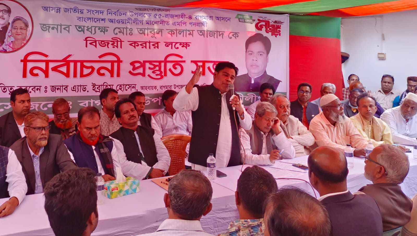 নির্বাচনী প্রস্তুতি সভায় সভাপতিত্ব করেন বাগমারা উপজেলা নির্বাচন পরিচালনা কমিটি আহবায়ক,রাজশাহী জেলা আওয়ামী লীগের সিনিয়র সহ-সভাপতি ও রাজশাহী এডভোকেট বার এসোসিয়েশনের সভাপতি এ্যাড. ইব্রাহীম হোসেন। প্রধান অতিথি ছিলেন নৌকা প্রতীকের মাঝি অধ্যক্ষ আবুল কালাম আজাদ।