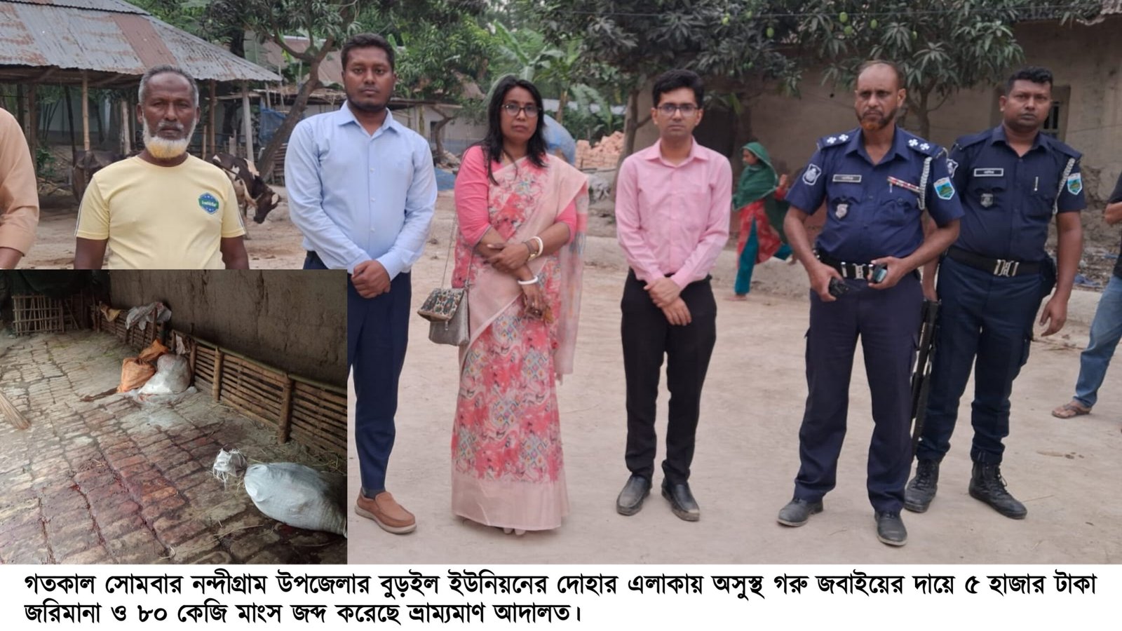 নন্দীগ্রামে অসুস্থ গরু জবাই দু’মন মাংস জব্দ