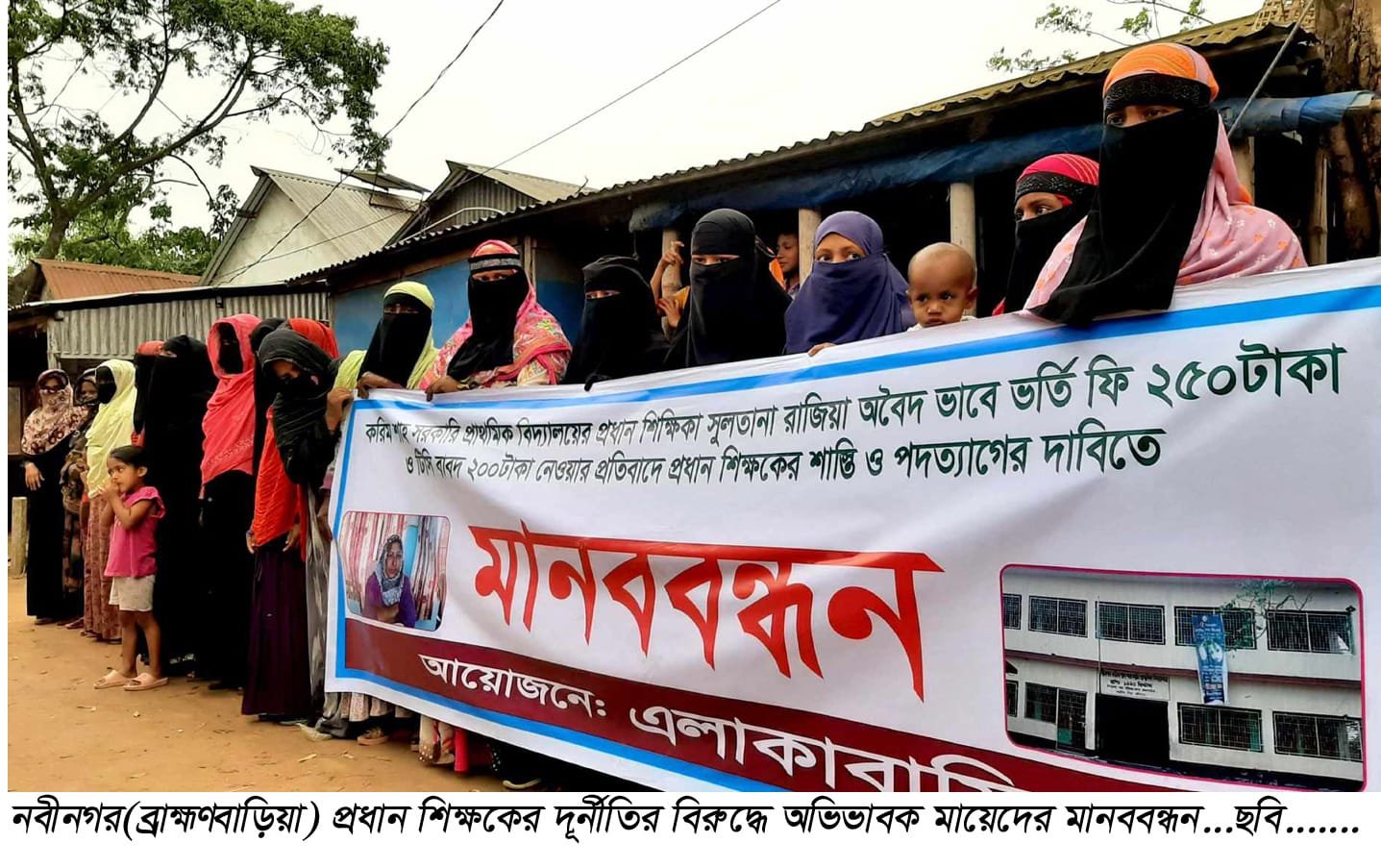 এ ব্যাপারে অভিযোগকারিসহ মানববন্ধনে অংশগ্রহনকারী ভুক্তভোগী লোকমা বেগম, মোমেনা বেগম,ময়না বেগম, শিরিন আক্তার,জেসমিন আক্তার,হালিমা আক্তারসহ যারা অংশগ্রহন করেছেন তারা সবাই উপরোক্ত নানাহ অনিয়ম ও দূর্নীতির চিত্র তুলে ধরে বলেন,আমরা গরিব মানুষ কারোর স্বামী রিস্কা চালক, ভ্যান চালক,কারোর স্বার্মী ক্ষুদ্র ব্যবসায়ী,সরকার আমাদের ফ্রি শিক্ষার ব্যবস্থা করেছে সেখানে আমাদের কেন টাকা দিতে হবে?। প্রতিবাদ করলে বলে,টাকা দিতে হবে সরকার নতুন আইন করেছে,আমরা এ প্রধান শিক্ষকের প্রত্যাহারসহ দৃষ্টান্তমূলক শাস্তির দাবী করছি।