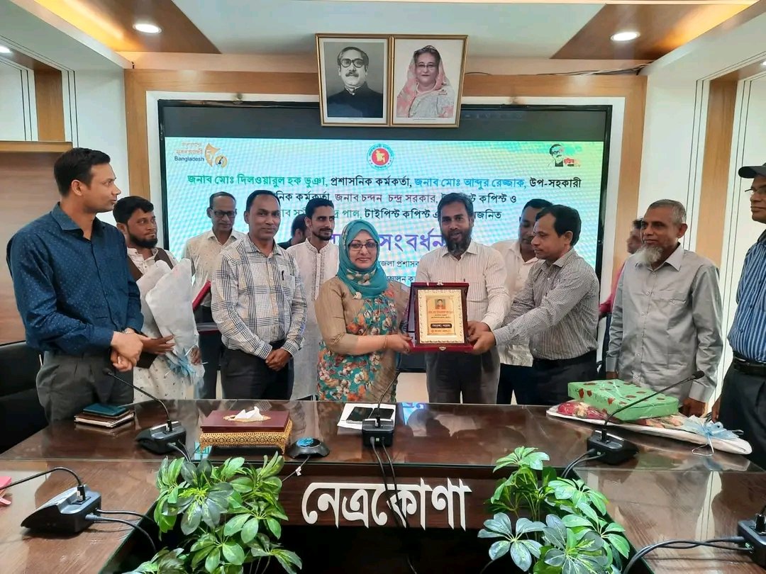 নেত্রকোনা জেলা প্রশাসনের উদ্যোগে সোমবার জেলা প্রশাসকের কার্যালয়ের সম্মেলন কক্ষে জেলা প্রশাসনের চারজন কর্মচারী প্রশাসনিক কর্মকর্তা মো. দিলওয়ারুল হক ভুঞা, উপ-সহকারী প্রশাসনিক কর্মকর্তা মো. আব্দুর রেজ্জাক, টাইপিস্ট কপিস্ট চন্দন চন্দ্র সরকার, টাইপিস্ট কপিস্ট সমীরন চন্দ্র পালের অবসরজনিত বিদায়ী সংবর্ধনা অনুষ্ঠিত হয়েছে।