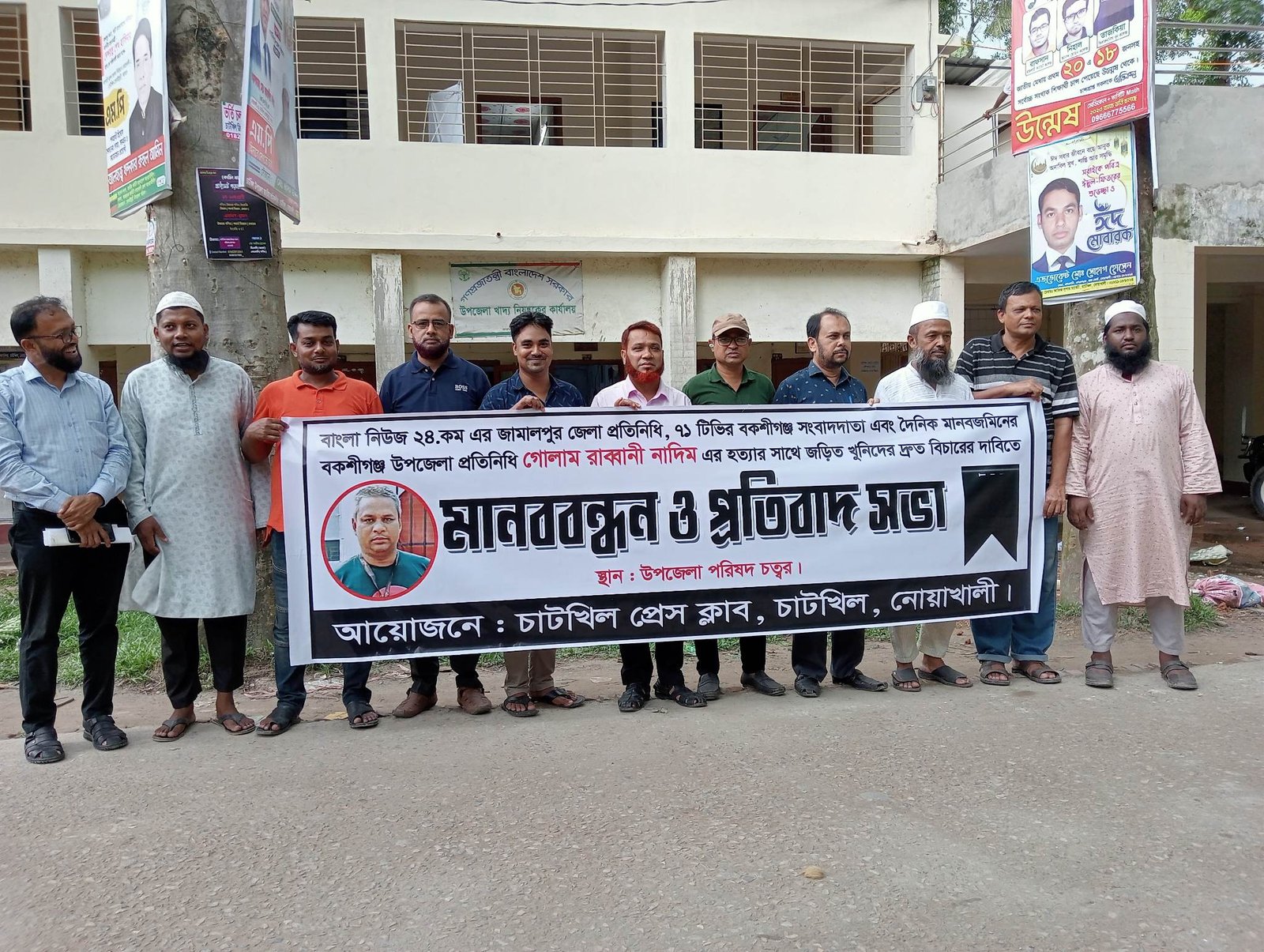 নোয়াখালীর চাটখিলে সাংবাদিক নাদিম হত্যার দ্রুত বিচারের দাবিতে মানববন্ধন