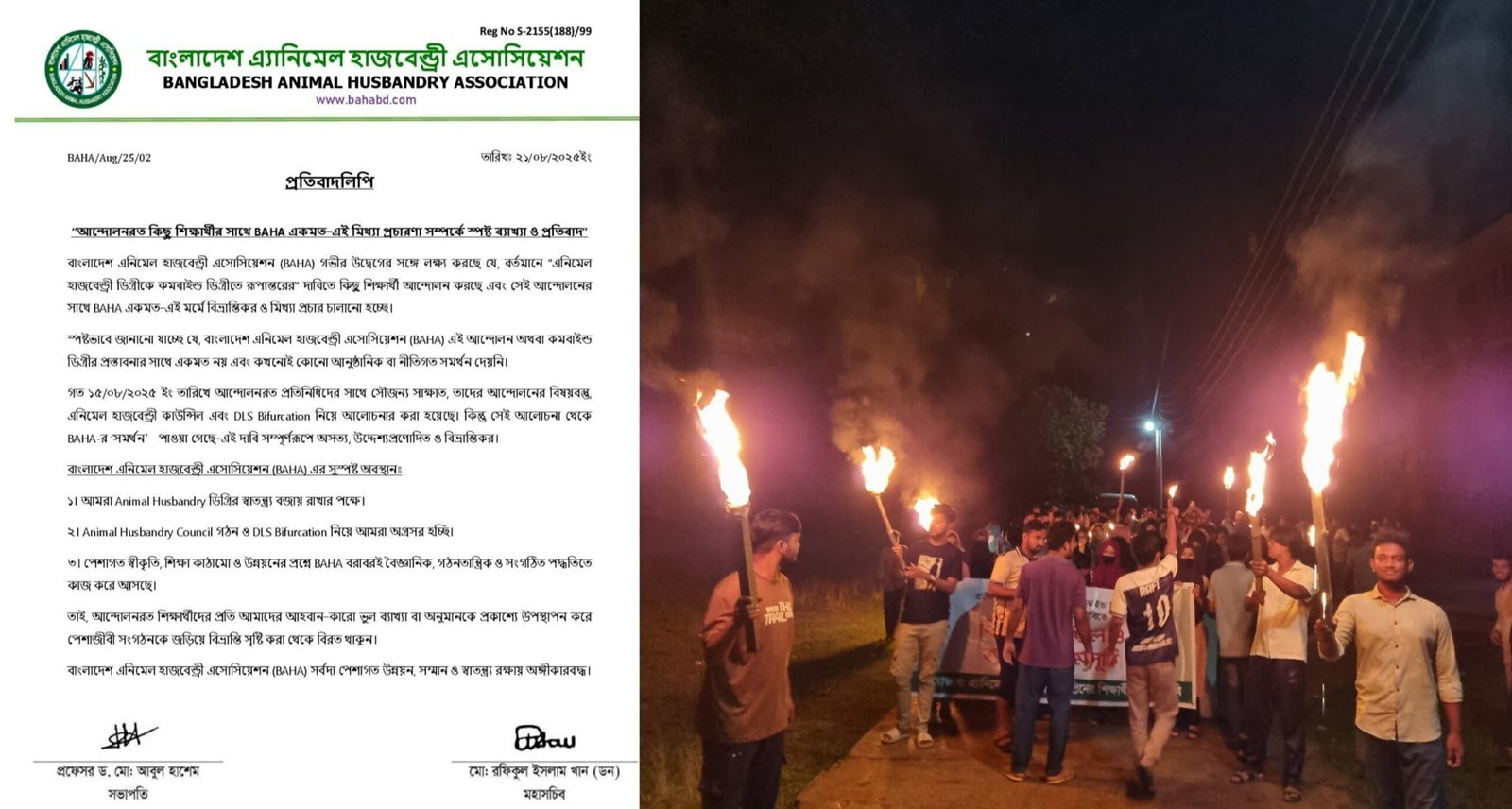 আন্দোলনের বিরুদ্ধে বৃহস্পতিবার (২১ আগস্ট) বাংলাদেশ এ্যানিমেল হাজবেন্ড্রি অ্যাসোসিয়েশন(বাহা) এক বিবৃতিতে জানায় কম্বাইন্ড ডিগ্রির দাবিতে কিছু শিক্ষার্থী আন্দোলন করছে এবং আন্দোলনের সাথে বাহা একমত-এই মর্মে বিভ্রান্তিকর ও মিথ্যা প্রচার চালানো হচ্ছে। এরই মধ্যে বাংলাদেশ কৃষি বিশ্ববিদ্যালয়ে (বাকৃবি) অনুষ্ঠিত গণভোটে দেখা গেছে কম্বাইন্ড ডিগ্রির পক্ষে ৯২ শতাংশ শিক্ষার্থী ভোট দিয়েছেন। একইসাথে পবিপ্রবির শিক্ষার্থীরাও একযোগে এই আন্দোলনে সক্রিয়ভাবে অংশগ্রহণ করছেন। এই বিবৃতির প্রতিবাদে শিক্ষার্থীরা মশাল মিছিল এবং মোমবাতি প্রজ্জ্বলন কর্মসূচি পালন করে।