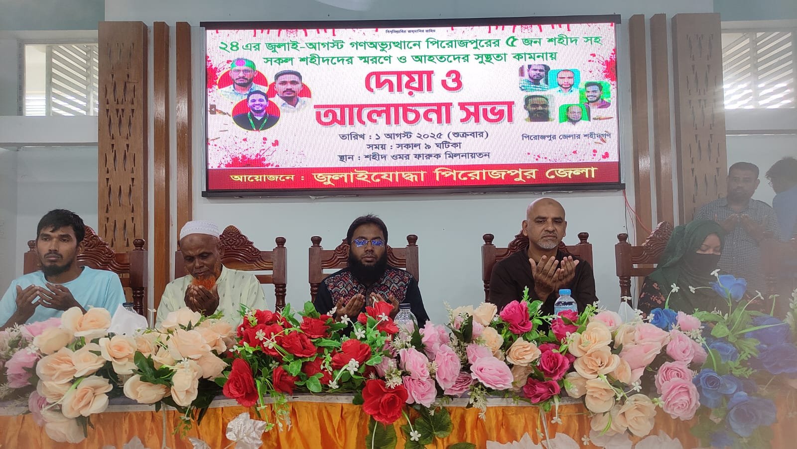 পিরোজপুরে জুলাই-আগস্ট গণঅভ্যুত্থানের শহীদদের স্মরণে দোয়া ও আলোচনা সভা