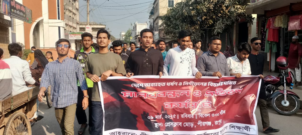 পীরগঞ্জে মানববন্ধন ও বিক্ষোভ মিছিল অনুষ্ঠিত