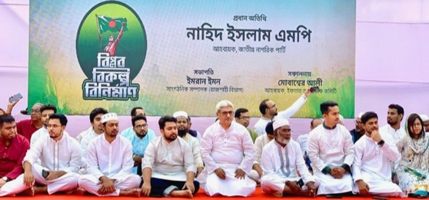 মঙ্গলবার (১০ মার্চ) বিকেলে রাজশাহী টিচার্স ট্রেনিং কলেজ মাঠে জাতীয় নাগরিক পার্টি-এনসিপি রাজশাহী বিভাগীয় শাখা আয়োজিত এই অনুষ্ঠানে প্রধান অতিথির বক্তব্যে তিনি এসব কথা বলেন।