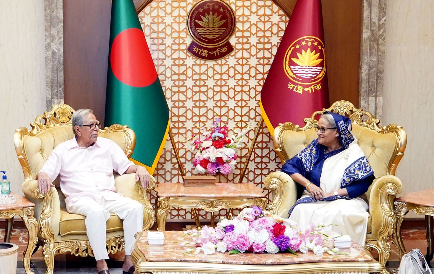 এর আগে সন্ধ্যায় বঙ্গভবনে এসে পৌঁছলে রাষ্ট্রপতি ফুল দিয়ে প্রধানমন্ত্রীকে স্বাগত জানান।