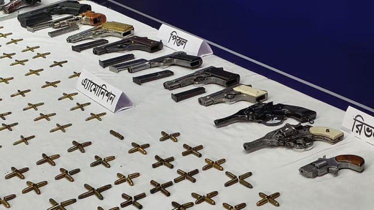 উদ্ধার করা অস্ত্রের মধ্যে রয়েছে যুক্তরাষ্ট্র, চীন, তুরস্ক ও জার্মানিতে তৈরি রিভলভার ও পিস্তলসহ ১১টি বিদেশি উন্নতমানের আগ্নেয়াস্ত্র, একটি স্বয়ংক্রিয় .২২ ক্যালিবার একে রাইফেল এবং দুটি এয়ারগান।