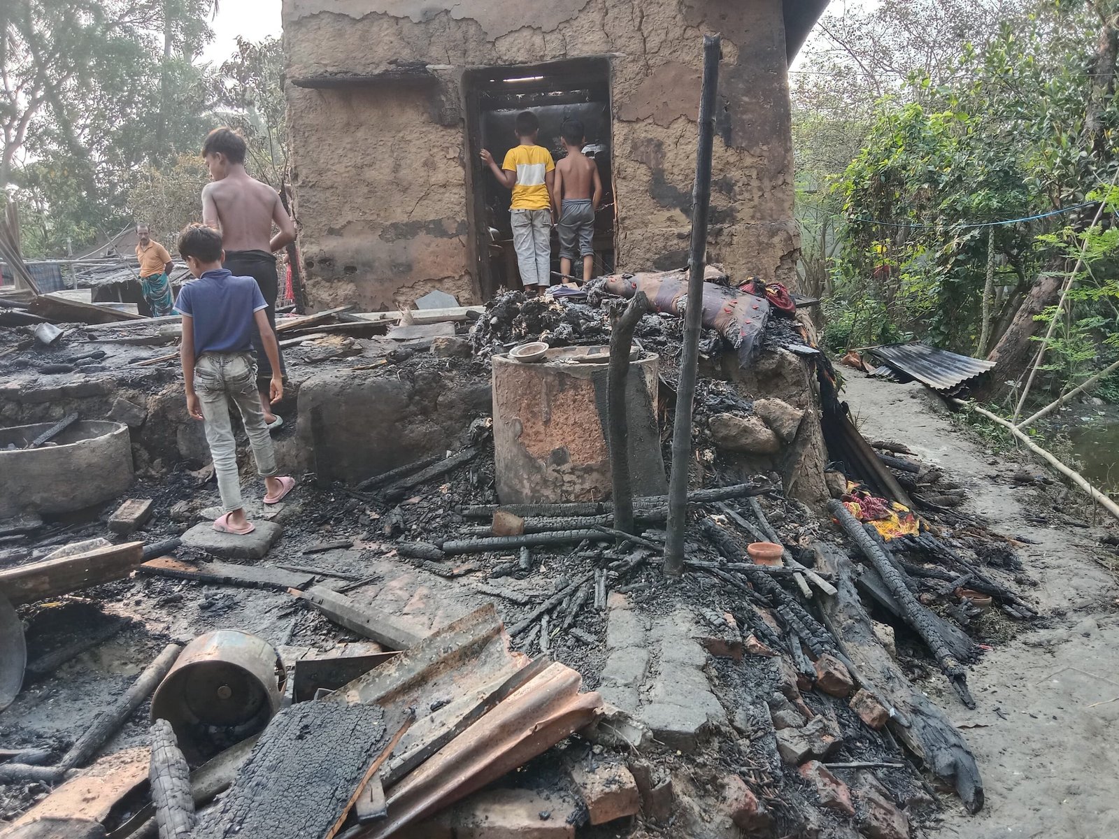 সরজমিনে গিয়ে দেখা যায়, পুরো বাড়িতে দাও দাও করে আগুন জ্বলছে৷ আগুন নেভানোর কাজে ব্যস্ত ফায়ার সার্ভিস ও স্থানীয় জনগণ। এদিকে সর্বস্ব হারিয়ে কান্নায় ভেঙে পড়েন পরিবারের সদস্যরা। পুড়ে গেছে এসএসসি পরিক্ষার্থীর প্রবেশপত্রও৷
