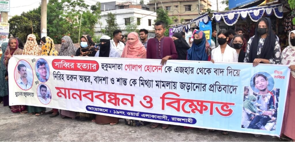 রাজশাহীতে তিন যুবকের বিরুদ্ধে মিথ্যা মামলা : প্রত্যাহারের দাবিতে চন্দ্রিমা থানা ঘেরাও
