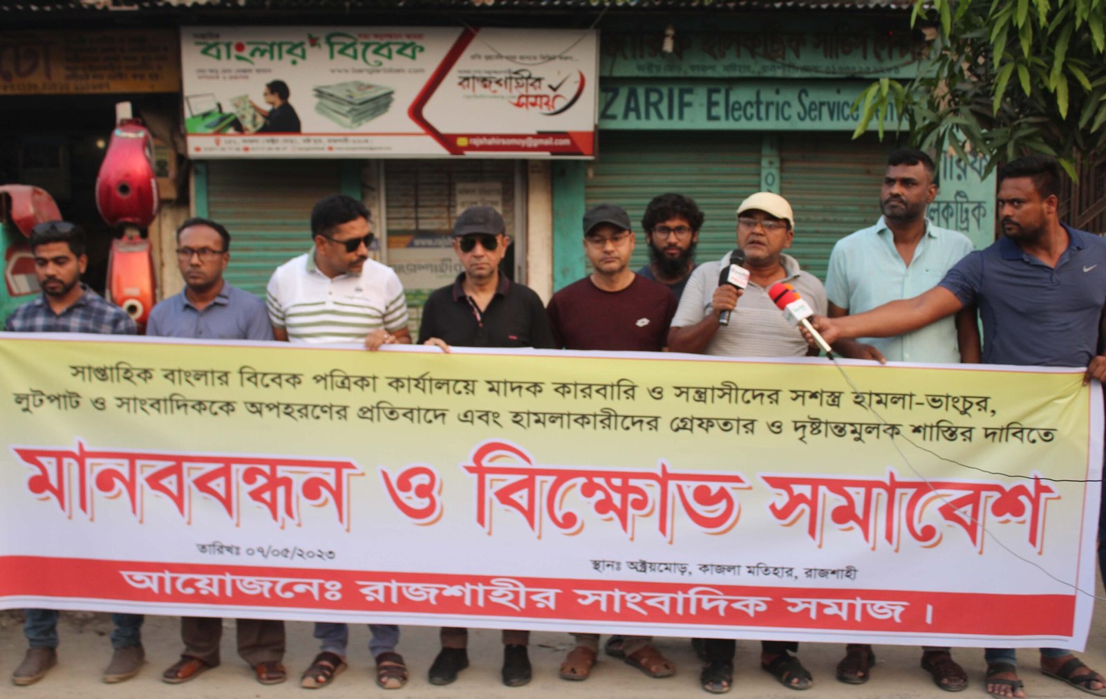 রাজশাহীতে পত্রিকা কার্যালয়ে হামলায় জড়িতরা গ্রেফতার না হলে কঠোর আন্দোলনের হুশিয়ারি সাংবাদিক নেতৃবৃন্দের