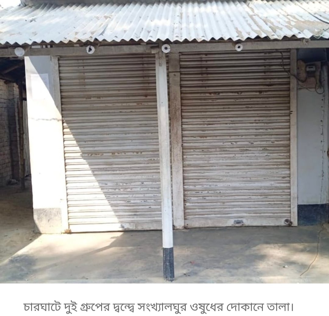 রাজশাহী চারঘাটে দুই গ্রুপের দ্বন্দ্বে সংখ্যালঘুর ওষুধের দোকানে তালা