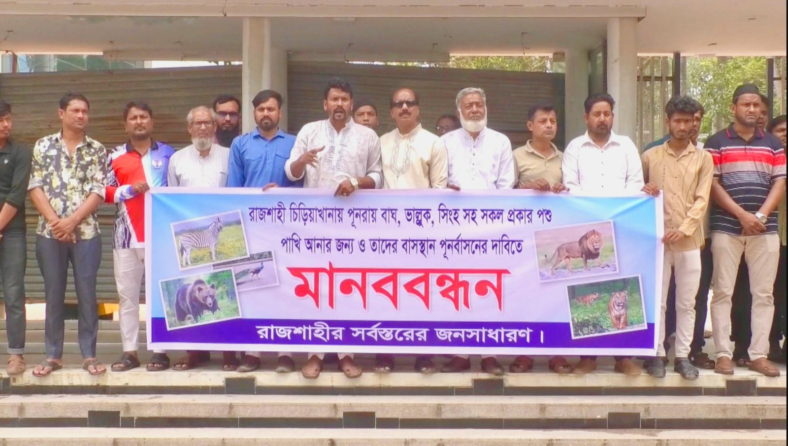 রাজশাহী চিড়িয়াখানায় পশুপাখি ফিরিয়ে আনার দাবিতে মানববন্ধন