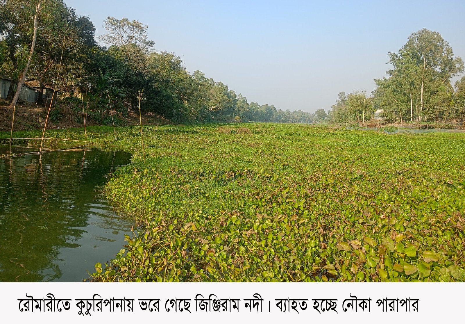 রৌমারীর জিঞ্জিরাম নদীতে ৫ কিলোমিটার জুড়ে কুচুরিপানা, নৌ’ চলাচল বন্ধ