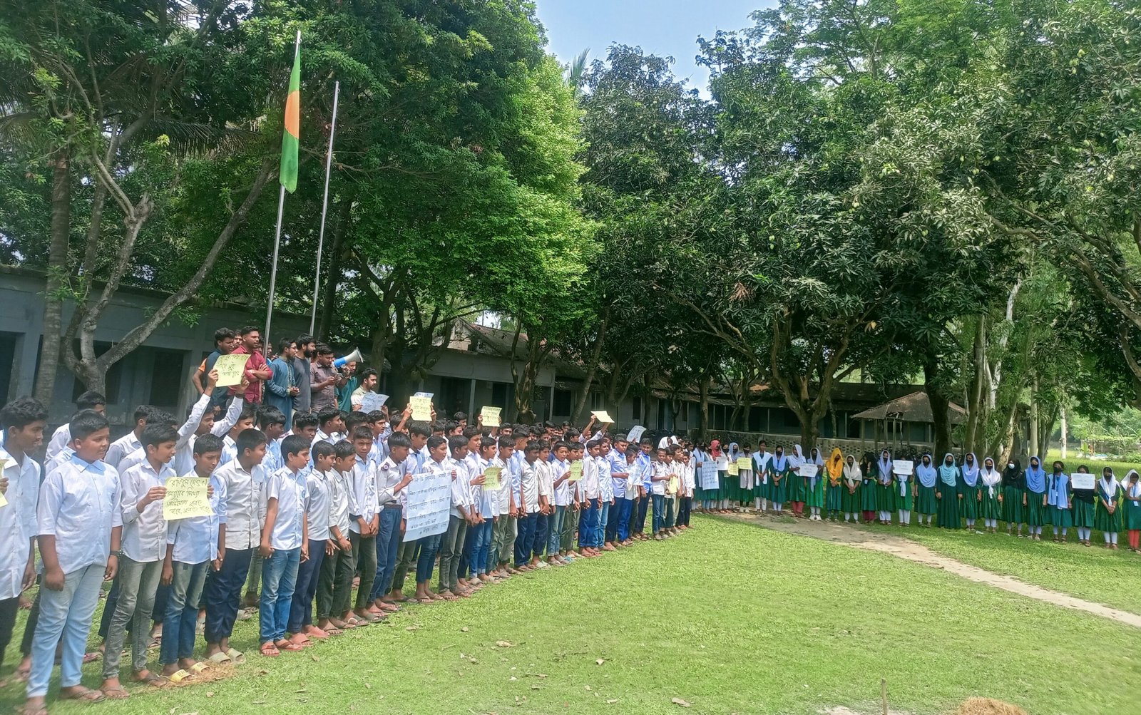 বুধবার বেলা সাড়ে ১১টায় অত্র বিদ্যালয় মাঠে এই মানববন্ধন কর্মসূচি অনুষ্ঠিত হয়। এতে বিদ্যালয়ের ছাত্র-ছাত্রী, শিক্ষক-কর্মচারী, অভিভাবক ও এলাকাবাসী অংশ নেন।