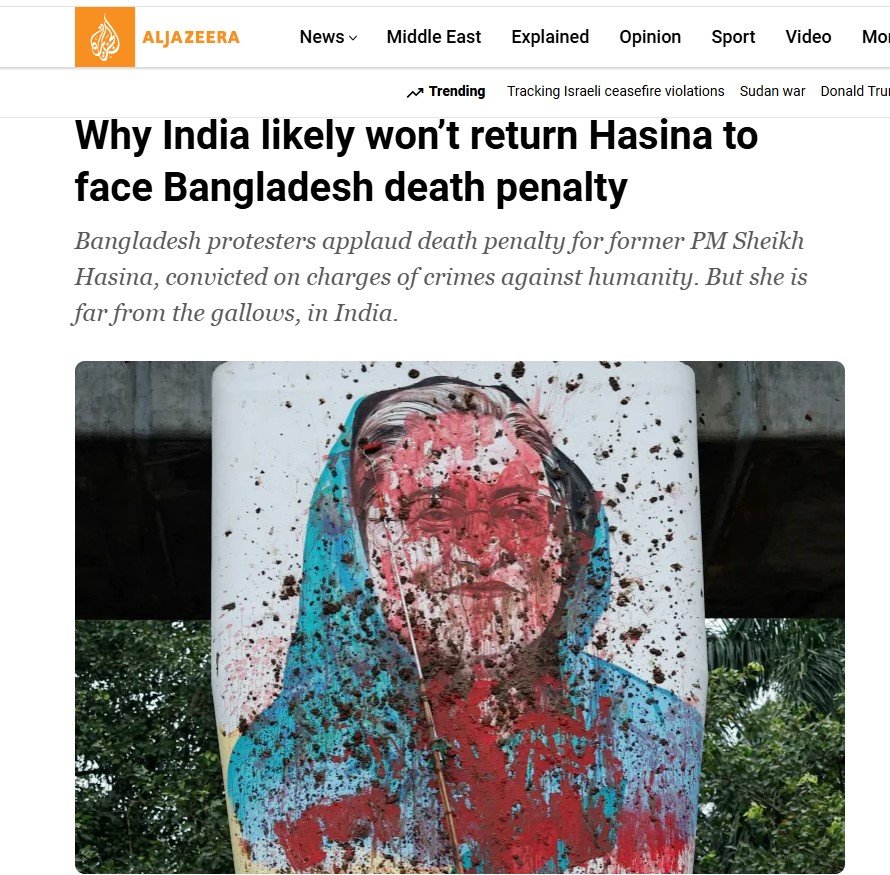 যদিও ভারত হাসিনা–পরবর্তী বাংলাদেশ সরকারের সঙ্গে সহযোগিতামূলক সম্পর্ক গড়ে তুলতে আগ্রহী। কয়েকজন ভূরাজনৈতিক বিশ্লেষক বলেছেন, তারা এমন কোনো দৃশ্য কল্পনাও করতে পারছেন না যে নয়াদিল্লি সাবেক প্রধানমন্ত্রীকে মৃত্যুদণ্ডের মুখোমুখি করতে বাংলাদেশে ফেরত পাঠাবে।