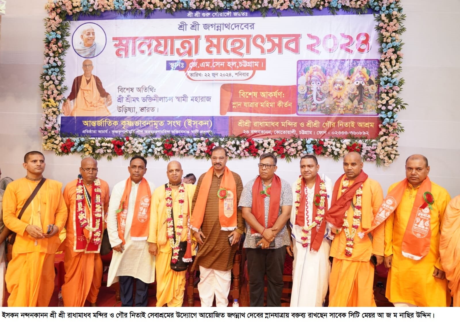 শনিবার দুপুরে নগরীর জেএমসেন হলে ইসকন নন্দনকানন শ্রী শ্রী রাধামাধব মন্দির ও গৌর নিতাই সেবাশ্রমের উদ্যোগে শ্রী শ্রী জগন্নাথ দেবের স্নানযাত্রা অনুষ্ঠানে প্রধান অতিথির বক্তব্যে তিনি একথা বলেন।