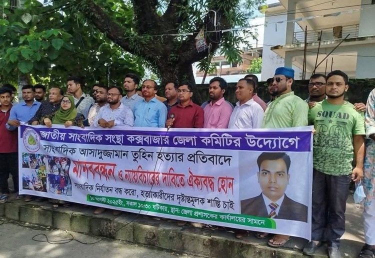 কক্সবাজার প্রতিনিধি: জাতীয় সাংবাদিক সংস্থা কক্সবাজার জেলা কমিটির উদ্যোগে সাংবাদিক আসাদুজ্জামান তুহিন হত্যার প্রতিবাদে এক মানববন্ধন অনুষ্ঠিত হয়েছে।