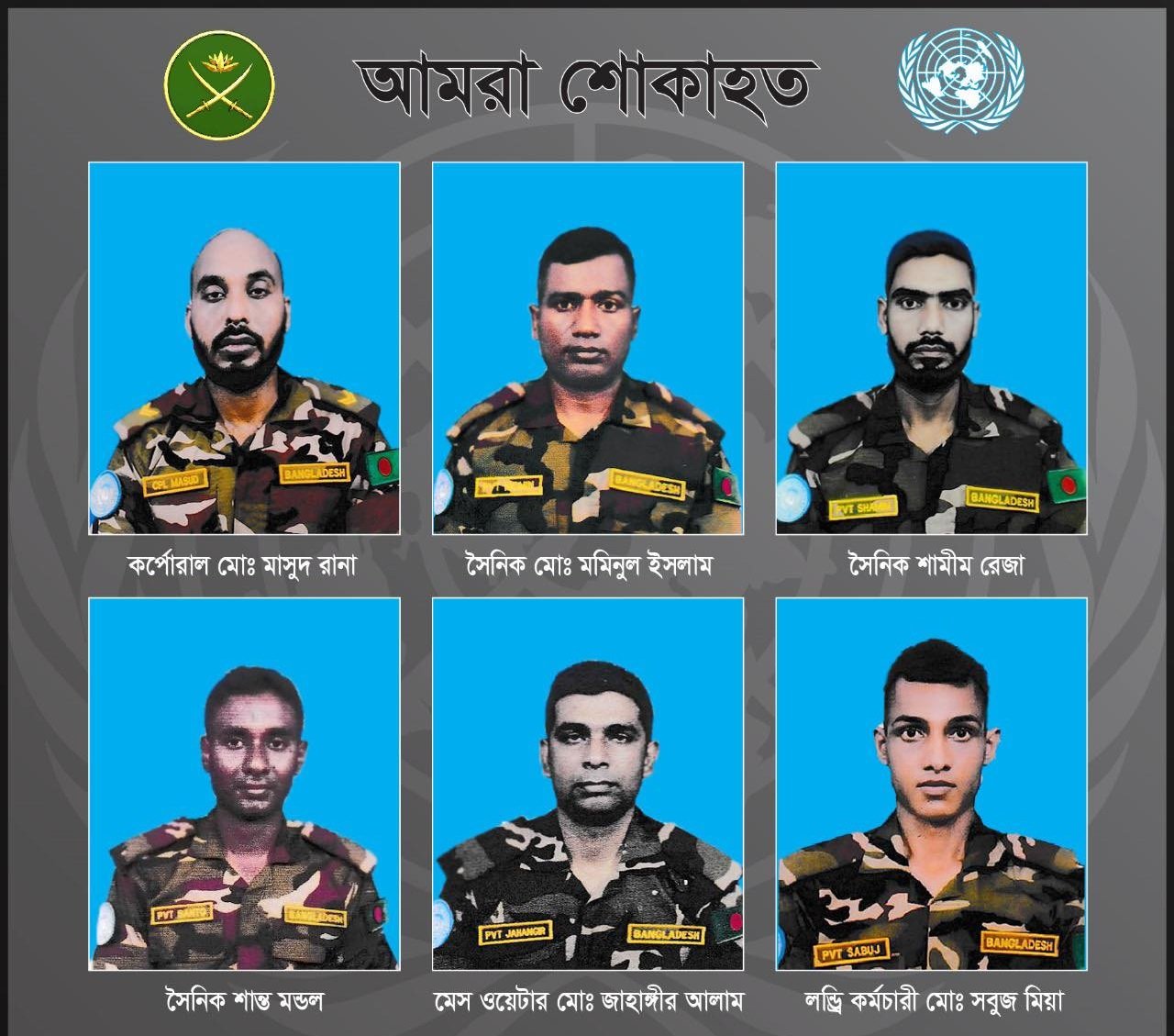 জাতিসংঘ মহাসচিব বাংলাদেশের প্রতি সংহতি প্রকাশ করে প্রধান উপদেষ্টাকে নিহত শান্তিরক্ষীদের শোকসন্তপ্ত পরিবারের প্রতি তার সমবেদনা পৌঁছে দেওয়ার অনুরোধ জানান।