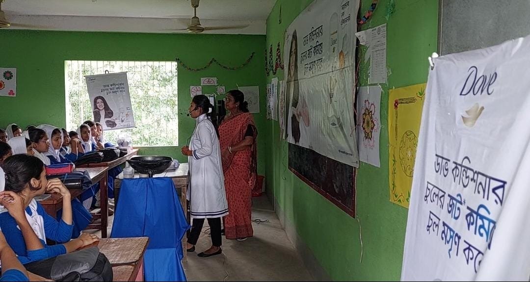সরজমিনে গিয়ে দেখা যায়, শিক্ষার্থীদের গুরুত্বপূর্ণ ক্লাস বন্ধ করে সচেতনতার কথা বলে সাবান, শ্যাম্পুসহ বিভিন্ন প্রসাধনী সামগ্রী বিজ্ঞাপন করছে ইউনিলিভার কোম্পানি। ঐ স্কুলের ষষ্ঠ শ্রেণী থেকে সকল মেয়ে শিক্ষার্থীদের তৃতীয় তলার বড় কক্ষে একসাথে গাদাগাদি করে বসিয়ে এমন কার্যক্রম করতে দেখা যায়। গুরুত্বপূর্ণ ক্লাস বাদ দিয়ে এমন কার্যক্রম করার কোন নিয়ম না থাকলেও নিয়ম-নীতির তোয়াক্কা না করে উপজেলা প্রশাসন কিংবা শিক্ষা অফিসকে অবহিত না করে বিজ্ঞাপনের অনুমতি দেন ঐ বিদ্যালয়ের ভারপ্রাপ্ত প্রধান শিক্ষক।