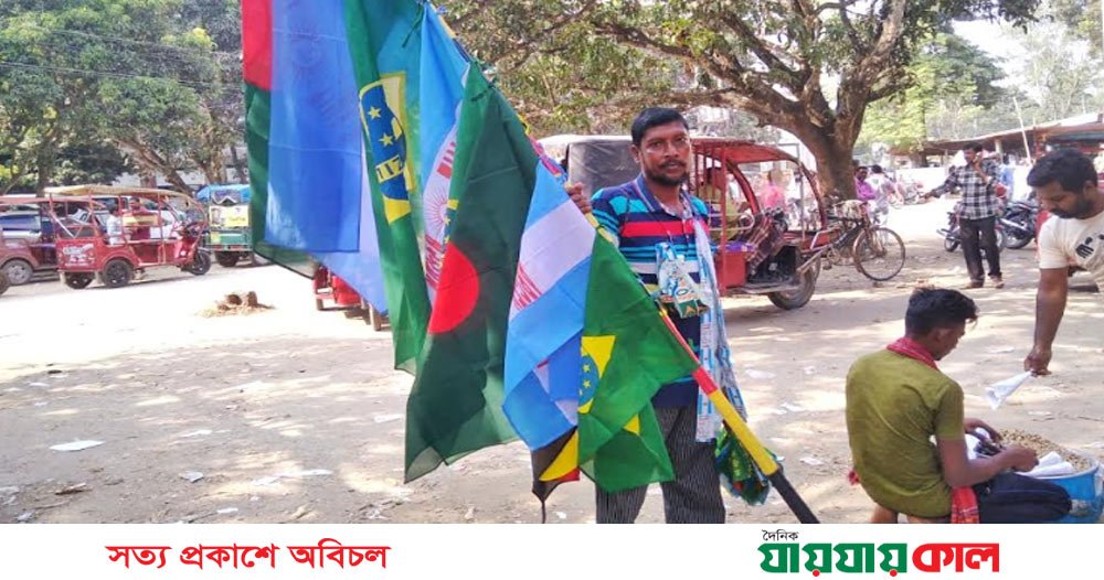ফুটবল বিশ্বকাপের পতাকা নিয়ে ছুটে চলছে হাবিব