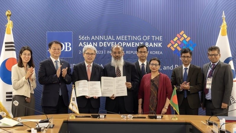 নিজস্ব প্রতিবেদক: বাংলাদেশ এবং দক্ষিণ কোরিয়া আজ ২০২৩ থেকে ২০২৭ সাল পর্যন্ত অর্থনৈতিক উন্নয়ন সহযোগিতা তহবিল (ইডিসিএফ) থেকে ৩ বিলিয়ন মার্কিন ডলার ঋণ ছাড় সংক্রান্ত একটি নতুন ফ্রেমওয়াক চুক্তি স্বাক্ষর করেছে।দক্ষিণ কোরিয়ার ইনচিওনে এশিয়ান ডেভেলপমেন্ট ব্যাংকের (এডিবি) বোর্ড অব গভর্নরর্সের ৫৬তম বার্ষিক সাধারণ সভা উপলক্ষে এই চুক্তি স্বাক্ষর হয়। এখানে কোরিয়ান দূতাবাসের এক প্রেস বিজ্ঞপ্তিতে