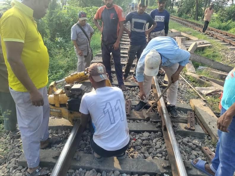 ব্রাহ্মণবাড়িয়ায় অতিরিক্ত তাপমাত্রায় বেঁকে যাওয়া রেললাইনের ৮টি অংশ কাটা হচ্ছ