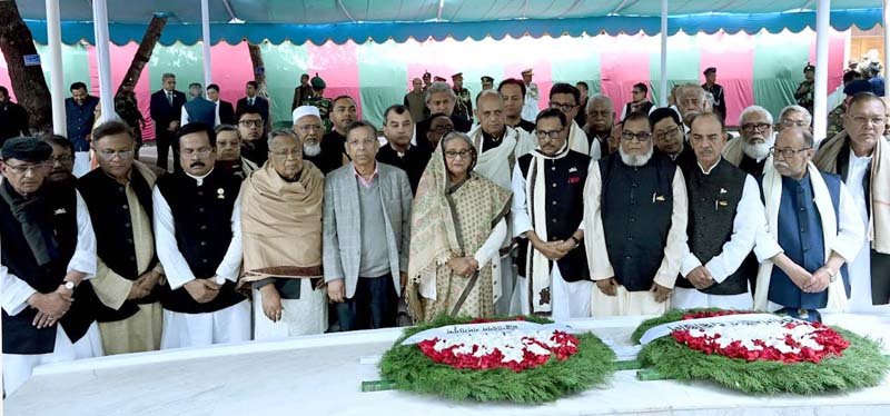 টুঙ্গিপাড়ায় বঙ্গবন্ধুর সমাধিতে প্রধানমন্ত্রী ও মন্ত্রিসভার সদস্যদের শ্রদ্ধা