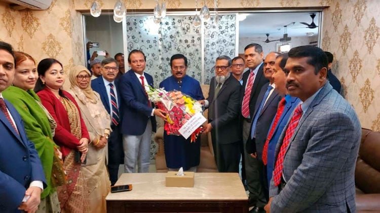 প্রধানমন্ত্রী শেখ হাসিনা রেকর্ড পঞ্চম এবং টানা চতুর্থবার সরকার গঠন উপলক্ষে আজ সকালে তাঁর মন্ত্রিসভার সদস্যদের সঙ্গে নিয়ে গোপালগঞ্জের টুঙ্গিপাড়ায় জাতির পিতা বঙ্গবন্ধু শেখ মুজিবুর রহমানের সমাধিতে পুষ্পস্তবক অর্পণ করে শ্রদ্ধা নিবেদন করেন। শেখ হাসিনা সড়ক পথে দু’দিনের সফরে গোপালগঞ্জের টুঙ্গিপাড়ায় পৌঁছে প্রথমে জাতির পিতা বঙ্গবন্ধু শেখ মুজিবুর রহমানের সমাধিতে পুষ্পস্তবক অর্পণ করে শ্রদ্ধা নিবেদন করেন।এসময় […]