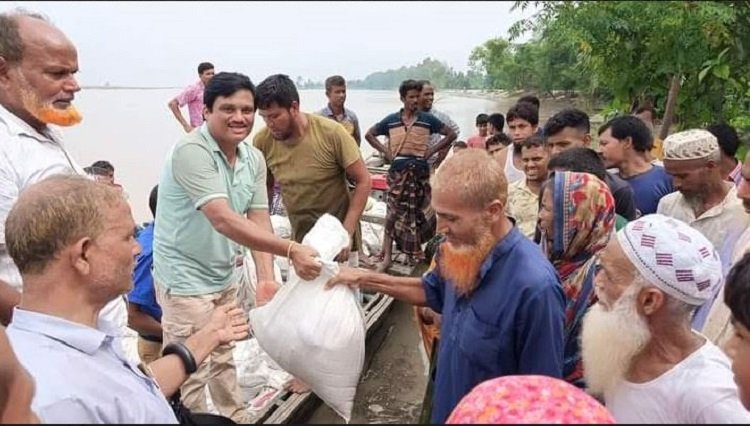 বন্যায় ক্ষতিগ্রস্তদের মাঝে ইউপি চেয়ারম্যানের ত্রাণ বিতরণ