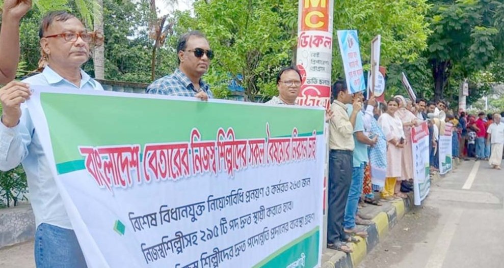 রাজশাহীতে বেতার কর্মকর্তা-কর্মচারি ও কলাকৌশলীদের মানববন্ধন