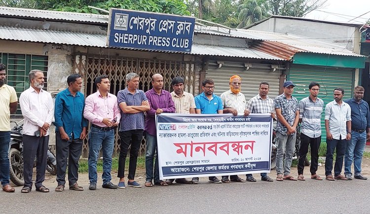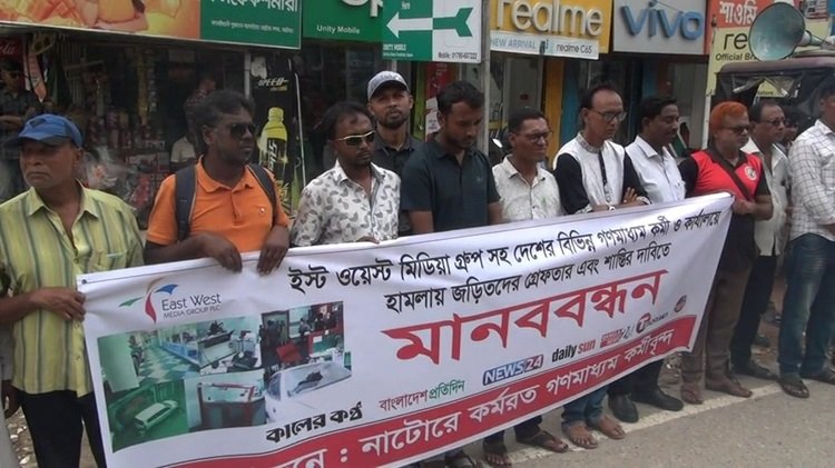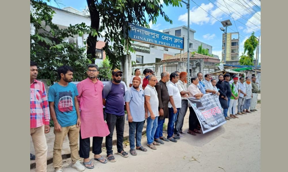 গণমাধ্যম প্রতিষ্ঠানের ওপর হামলার প্রতিবাদে দিনাজপুরে মানববন্ধন