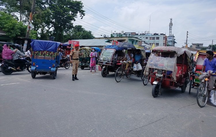 গাইবান্ধায় ট্রাফিক নিয়ন্ত্রণে শিক্ষার্থীরা