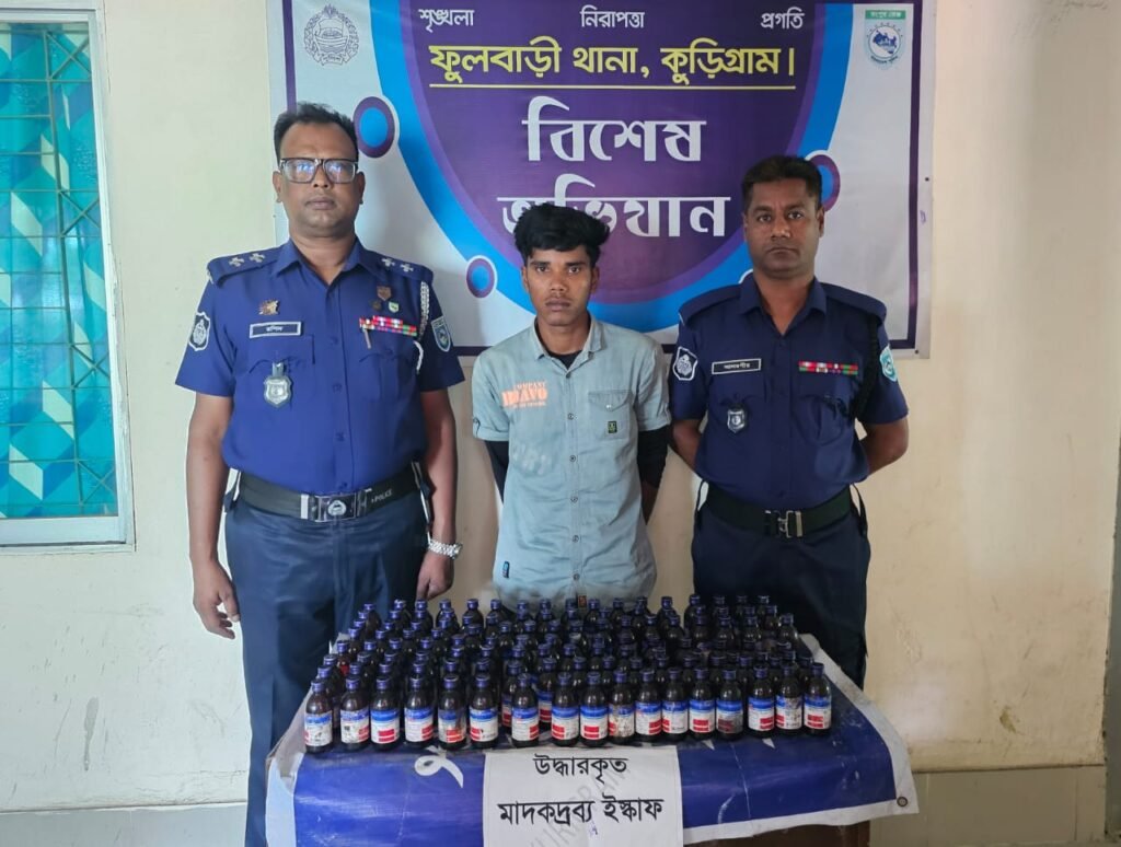 ফুলবাড়ী (কুড়িগ্রাম) প্রতিনিধি: কুড়িগ্রামের ফুলবাড়ী থানা পুলিশ অভিযান চালিয়ে ১২০ বোতল ভারতীয় মাদক ইস্কাফসহ ১ মাদক কারবারীকে আটক করে। মঙ্গলবার রাত ১১ টায় উপজেলা সদরের কদমতলা চৌরাস্তা মোড় থেকে ব্যাটারিচালিত অটোরিক্সাসহ মাদক কারবারী ফারুক হোসেন ফাহিম (২০) কে আটক করা হয়। সে উপজেলার কাশিপুর ইউনিয়নের শ্যামপুর গ্রামের গংগারহাট এলাকার মৃত জয়নাল আবেদিনের ছেলে। পুলিশসূত্রে জানাগেছে, […]