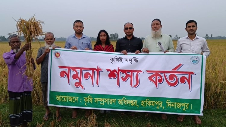 হিলিতে ব্রি ধান কাটার উদ্বোধন