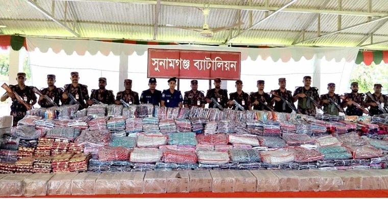 সুনামগঞ্জে বিজিবির অভিযান: সাড়ে ৫ কোটি টাকার ভারতীয় পণ্য জব্দ